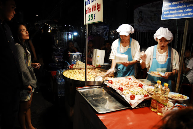 This trip seems to be getting better by the day, but I think yesterday will be hard to beat after meeting those tigers. We had the bike until 15:30 so thought we would make the most of it and travel a bit further out of town to San Kampaeng. It's meant to be full of handicraft things that Isabella was pretty keen to have a look at but when we got there it was dead... must have been the wrong day. After the bike went back we chilled by the pool until early evening, when we got a Tuk Tuk over to the Saturday Market which is similar to the night bazaar. The night bazaar had so much crap for tourists like fake football shirts and fake watches, probably because it had become so famous but the saturday market was so much better! It was a lot more of what I expected from the night bazaar with more hand made bits and food stalls.